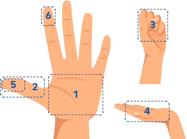 Palm of hand (no fingers) - 1 ounce of meat or cheese