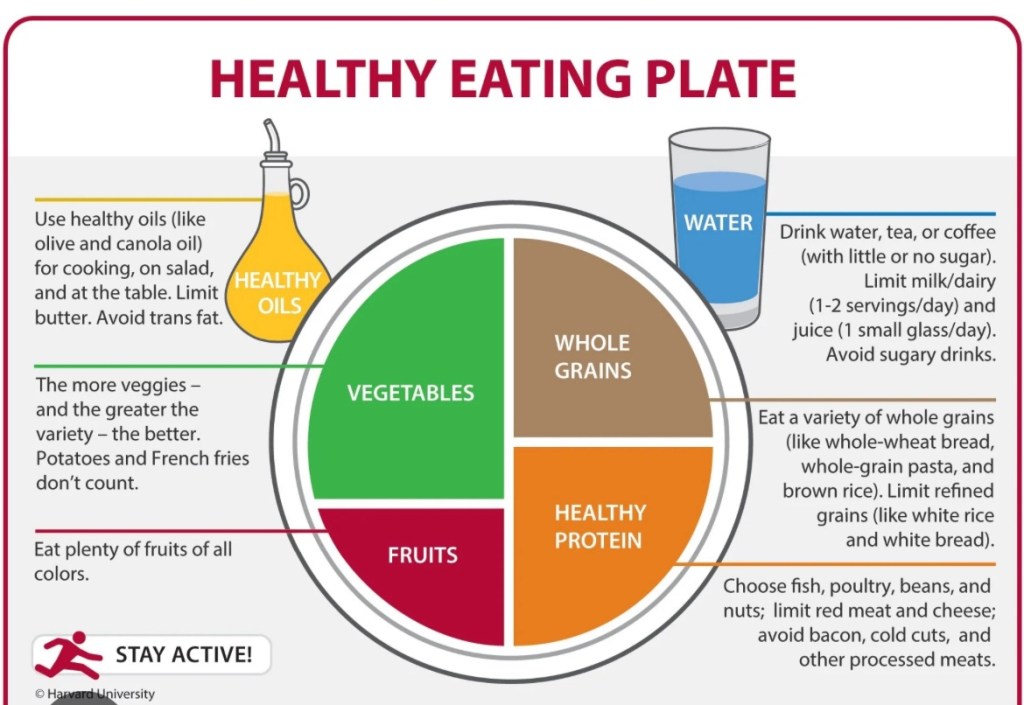 I later (by accident) found this healthy eating plate from Harvard. I actually think it’s closer to what I eat but both are good representations of how my plate looks.