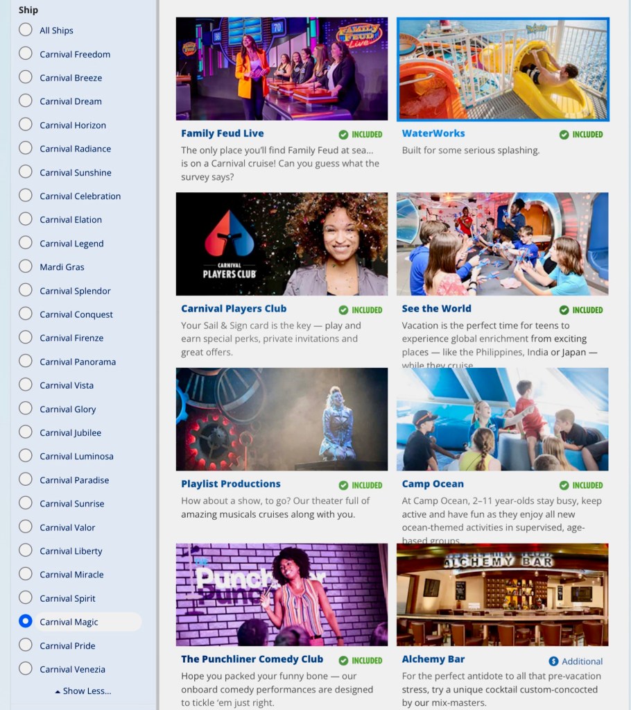 We are not frequent cruise ship vacationers but a family Christmas cruise is definitely worth looking into if you’re thinking about a trip that would appeal to a variety of ages and interests. Check out what each Carnival ship has to offer HERE.