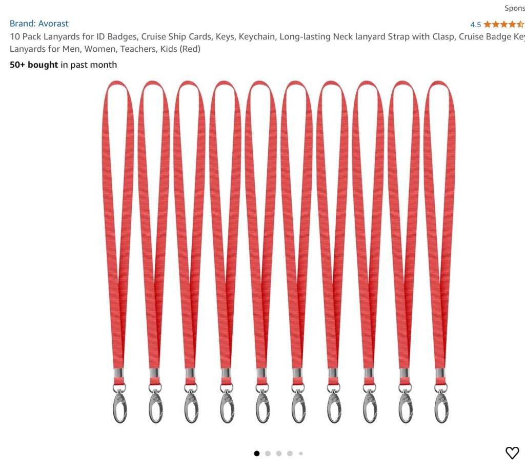 - Lanyard for your ship card. You need the card all the time. They are less than a dollar each ordered but over five dollars each onboard. Link HERE