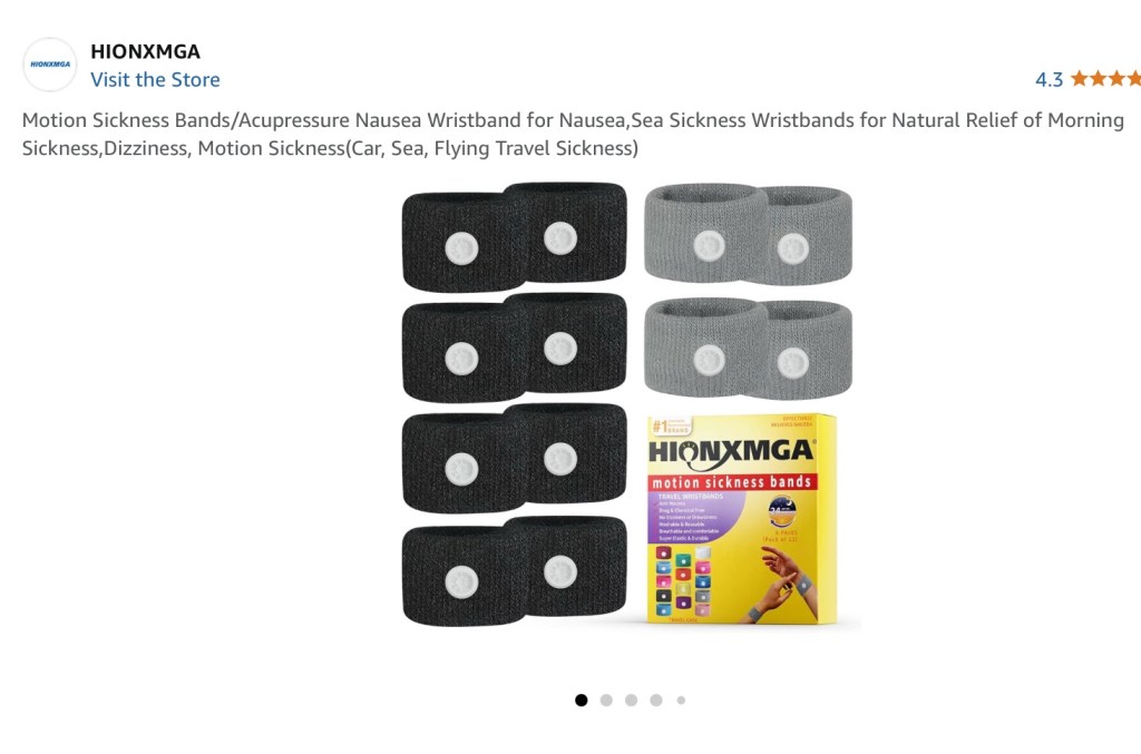 - Motion sickness bands and/or patches. I only needed the bands one day. Link HERE