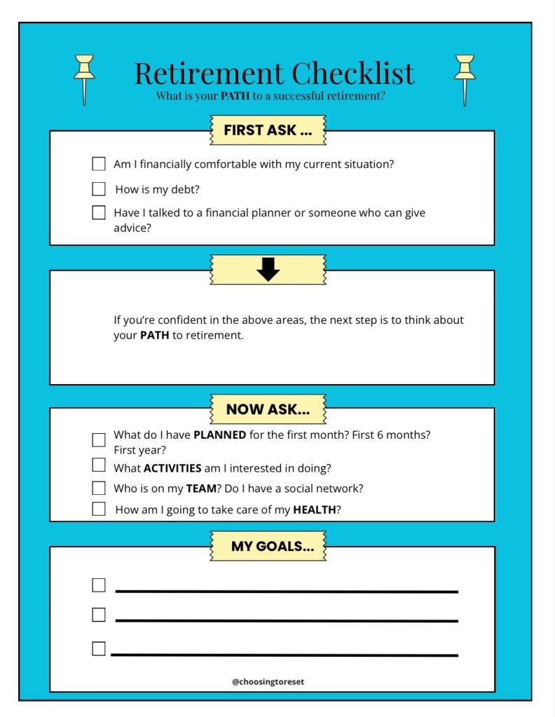 Team: Who is in your team? Who are the people in your circle? Your social life will definitely affect how you feel about retirement.